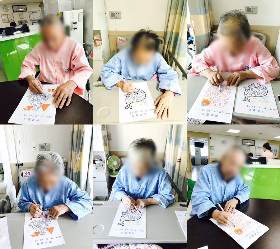 인지치료 - 미로 찾기 본문 2017년 4월 18일 (화) 오늘은 인지치료로 미로 찾기를 하였습니다. 출발점과 도착점을 알려드리며 설명을 해드렸지만, 미로 찾기에 대해 조금 어려워 하셨습니다. 하지만, 진행자와 함께 조금씩 미로를 찾아 가시면서 재미있어 하시면서 미로 찾기를 끝낼 수 있었습니다^^ 이전글 목록 다음글