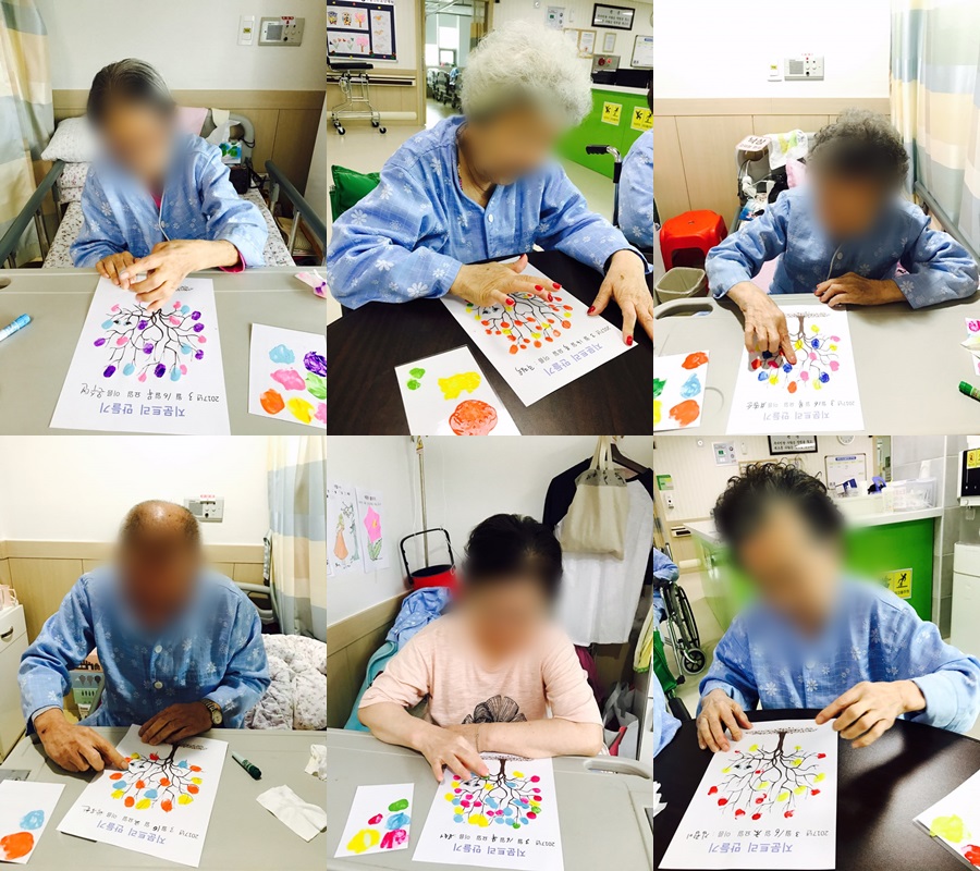 미술치료 - 지문트리 만들기 본문 2017년 3월 16일 (목) 오늘은 미술치료로 지문트리 만들기를 하였습니다. 다양한 색깔로 자신의 손가락 지문을 이용하여 나무그림을 예쁘게 꾸미셨고, 완성 후에는 "아름답다, 예쁘다"라는 단어를 많이 말씀하시면서 좋아하셨습니다^^ 이전글 목록 다음글