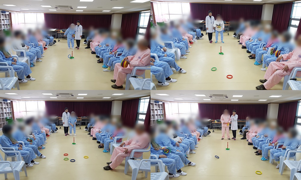 치료레크리에이션 - 고리 던지기 본문 2017년 3월 23일 (목) 오늘은 치료레크리에이션으로 고리 던지기를 하였습니다. 고리대를 조금 앞으로 당겼음에도 불구하고 고리를 하나씩 던지시면서 힘들어 하셨지만, 양팀을 서로 응원해주기도 하셨고, 높은 점수를 받으면 자신의 일처럼 기뻐하며 축하도 해주셨습니다^^ 이전글 목록 다음글