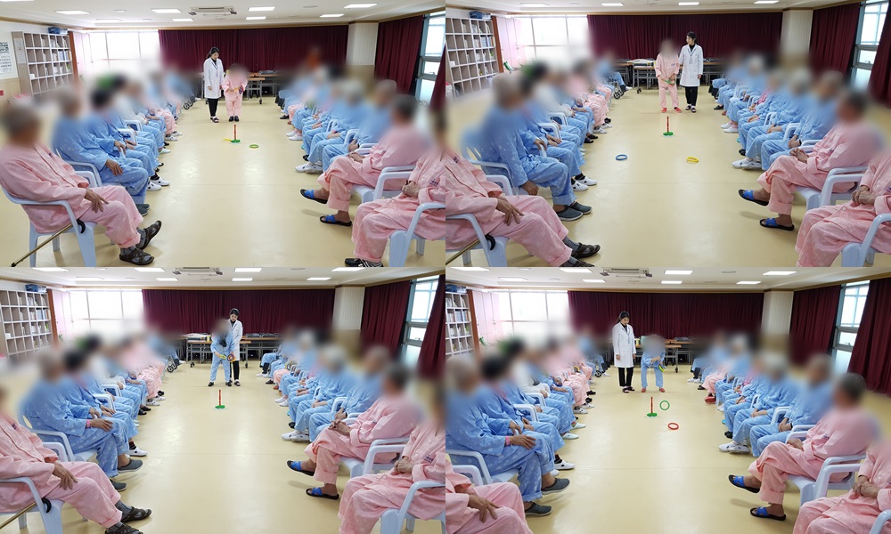 치료레크리에이션 - 고리 던지기 본문 2017년 4월 5일 (수) 오늘은 치료레크리에이션으로 고리 던지기를 하였습니다. 고리대를 향해 고리를 던져도 고리가 자꾸 도망간다고 하시면서 즐거워 하셨고, 연습게임을 통해 먼저 몸을 풀고 본 게임을 시작하는 분들도 계실 만큼 적극적으로 참여하셨습니다^^ 이전글 목록 다음글