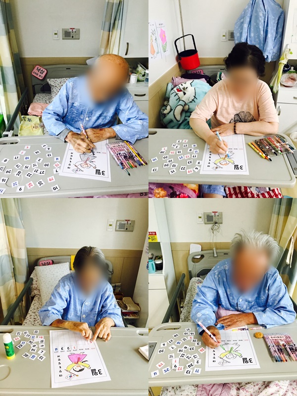 3.1절이라는 역사를 생각하시면서 색칠을 할 때 집중하여 완성하셨고,