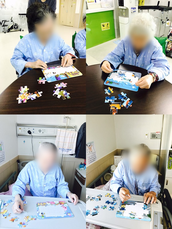 인지치료 - 퍼즐 본문 2017년 3월 3일 (금) 오늘은 인지치료로 퍼즐 맞추기를 하였습니다. 어렵다고 하시면서도 하나씩 조각을 맞춰가며 그림이 완성되는 것을 보시고는 신기하다며 박수도 치셨고, 자신이 완성한 퍼즐을 들어 뿌듯해 하기도 하셨습니다^^ 이전글 목록 다음글