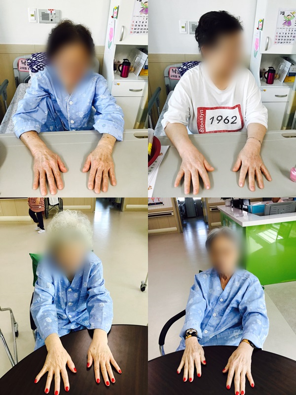 미용프로그램 - 손·얼굴 마사지 본문 2017년 3월 8일 (수) 오늘은 미용프로그램으로 손·얼굴 마사지를 하였습니다. 젊은시절 고생을 많이 했다며 손을 보여주기 꺼려하셨지만, 예쁜 색깔로 손톱에 매니큐어를 발라드리니 예쁘다며 어린 아이처럼 좋아하셨습니다^^ 이전글 목록 다음글
