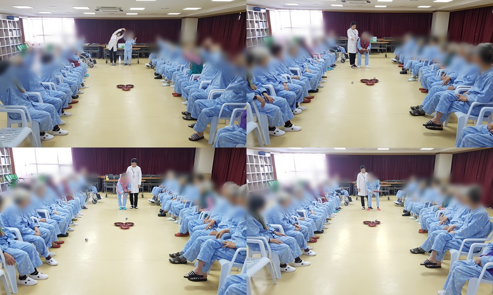 치료레크리에이션 - 신문지 공 던지기 본문 2017년 3월 8일 (수) 오늘은 치료레크리에이션으로 신문지 공 던지기를 하였습니다. 바구니가 낮아 공이 튕겨 나오는 것을 보시고는 아쉬워 한숨을 내쉬기도 하셨고, 높은 점수를 받으라며 서로를 응원해주는 모습들이 정말 보기 좋았습니다^^ 이전글 목록 다음글