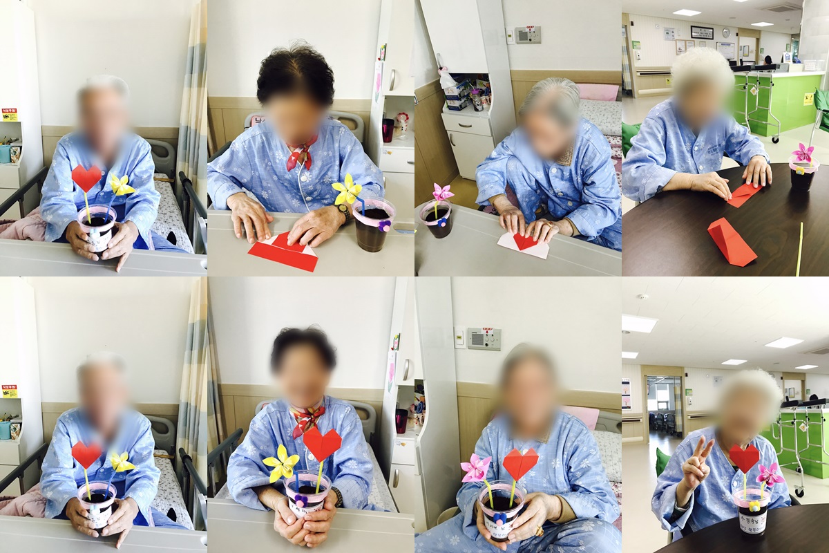 인지치료 - 커피 방향제 만들기 본문 2017년 2월 24일 (금) 오늘은 인지치료로 커피 방향제 만들기를 하였습니다. 색종이로 예쁜 꽃과 하트 모양을 접어 화분처럼 꾸민 커피 방향제에 꽂아 주었고, 완성한 커피 방향제로 각 병실 마다 향긋한 커피향으로 채울 수 있었습니다^^ 이전글 목록 다음글