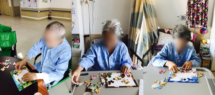 인지치료 - 퍼즐 본문 2017년 2월 9일 (목) 오늘은 인지치료로 퍼즐을 하였습니다. 어렵다 어렵다 말씀 하시면서도 완성하고 싶은 마음이 크셨는지 진행자에게 힌트를 요청하시면서 퍼즐을 완성하셨고, 박수를 치시며 스스로 뿌듯해 하셨습니다^^ 이전글 목록 다음글