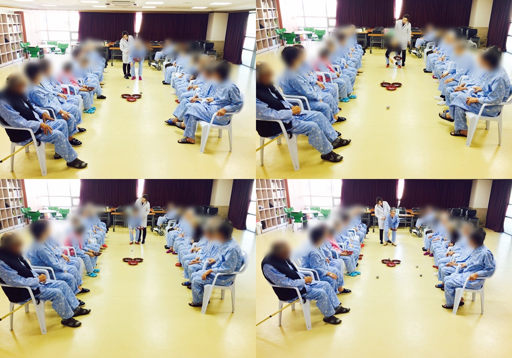 2016년 12월 20일 오늘은 치료레크리에이션으로 신문지 공 던지기를 하였습니다.