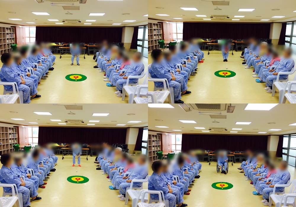 치료레크리에이션 - 과녁 맞추기 본문 2016년 12월 7일 오늘은 치료레크리에이션으로 과녁 맞추기를 하였습니다. 제일 높은 점수를 받아야 한다며 참여자분들 모두 집중을 하셨고, 서로 서로 잘 했다며 칭찬도 해주시면서 즐겁게 게임에 참여하셨습니다^^ 이전글 목록 다음글