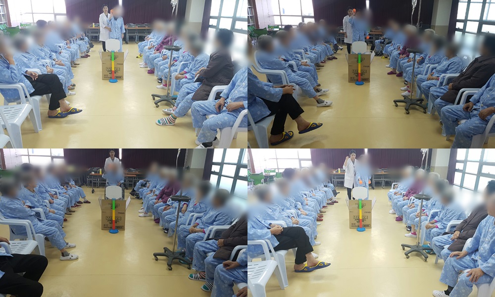 치료레크리에이션 - 농구 본문 2016년 11월 2일 오늘은 치료레크리에이션으로 농구를 하였습니다. 작은 공을 한손에 잡고 농구대가 부서질 정도 힘있게 던지시며 흥미를 많이 느끼셨고, 튕겨나가는 공을 보고는 아쉽다는 듯 한숨을 내 쉬셨지만 즐거워하셨습니다^^ 이전글 목록 다음글
