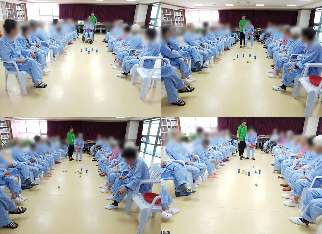 치료레크리에이션 - 동물 맞추기 본문 2016년 10월 20일 오늘은 치료레크리에이션으로 동물 맞추기를 하였습니다. 생각보다 동물을 맞추기가 어렵다고 하시면서도, 공을 세게 던져 깡통이 있는 위치보다 더 멀리 공이 날아가 재미있게 즐기셨습니다. 이전글 목록 다음글