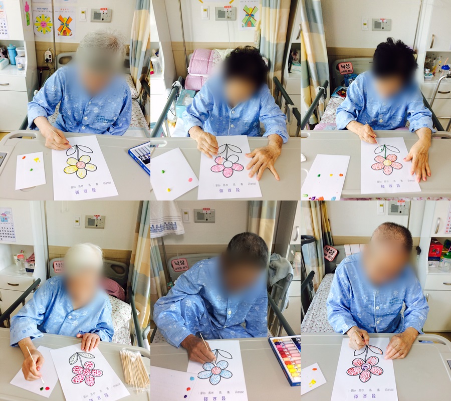 미술치료 - 점묘화 본문 2016년 10월 07일 오늘은 미술치료로 점묘화를 하였습니다. 새로운 방법으로 하는 것이 신기하다고 하시면서 꼼꼼하게 점을 찍어 그림을 완성하셨습니다. 이전글 목록 다음글