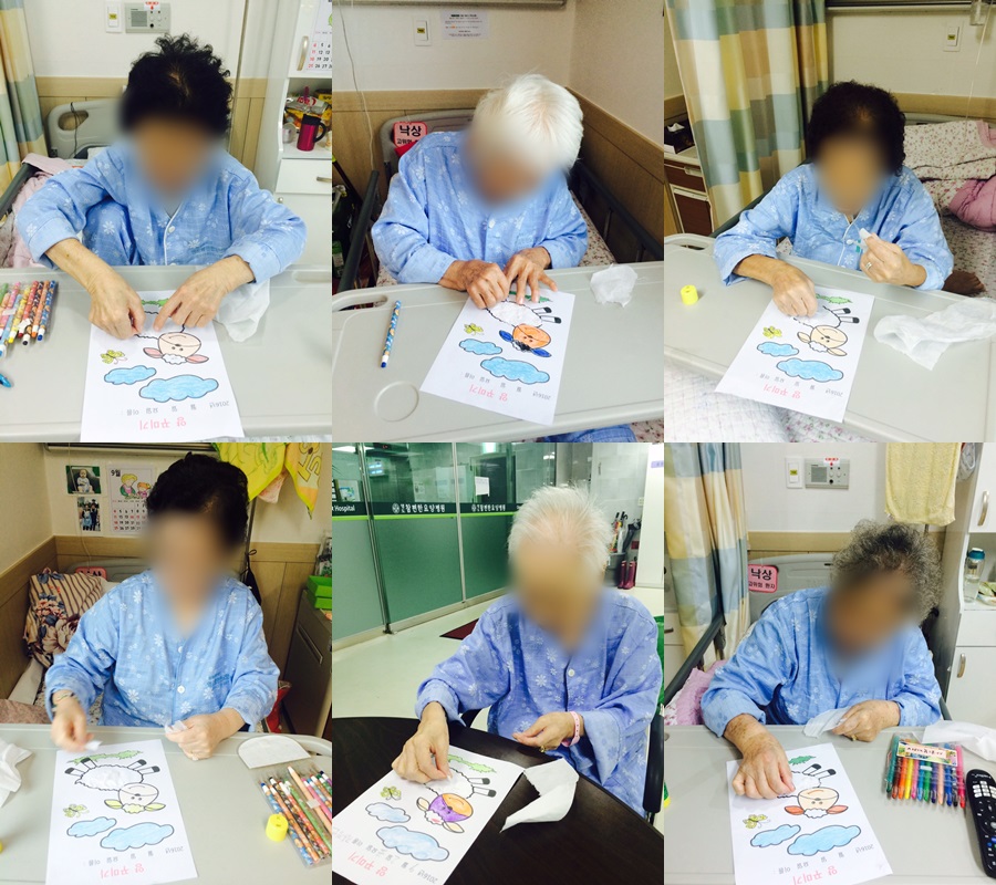 미술치료 - 양 꾸미기 본문 2016년 9월 2일 오늘은 미술치료로 양 꾸미기를 하였습니다. 티슈로 양털을 꾸미는 것이 재미있고 신기하다며 예쁘게 꾸미기 위해 집중하셨습니다^^ 이전글 목록 다음글