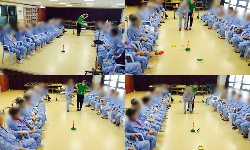치료레크리에이션 - 고리 던지기 본문 2016년 8월 4일 오늘은 치료레크리에이션으로 고리 던지기를 하였습니다. 마음대로 되지 않는다고 말씀하시면서 고리를 힘차게 던지셨습니다^^ 이전글 목록 다음글