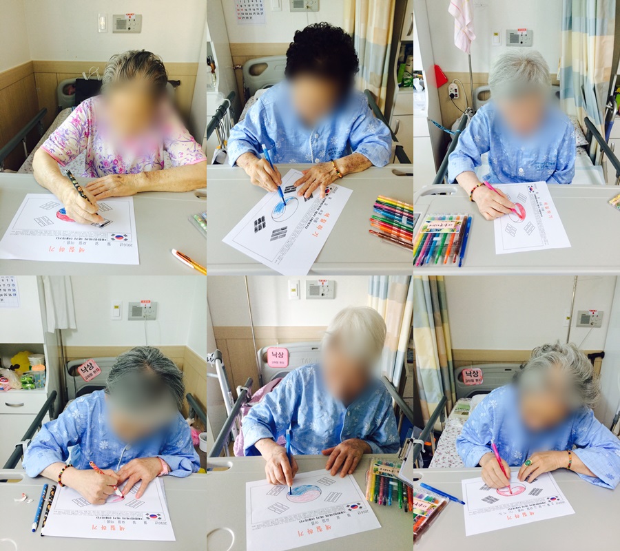 광복절을 맞이하여 태극기를 색칠해보시면서 전쟁 때 있었던 이야기를 많이 해주셨습니다^^