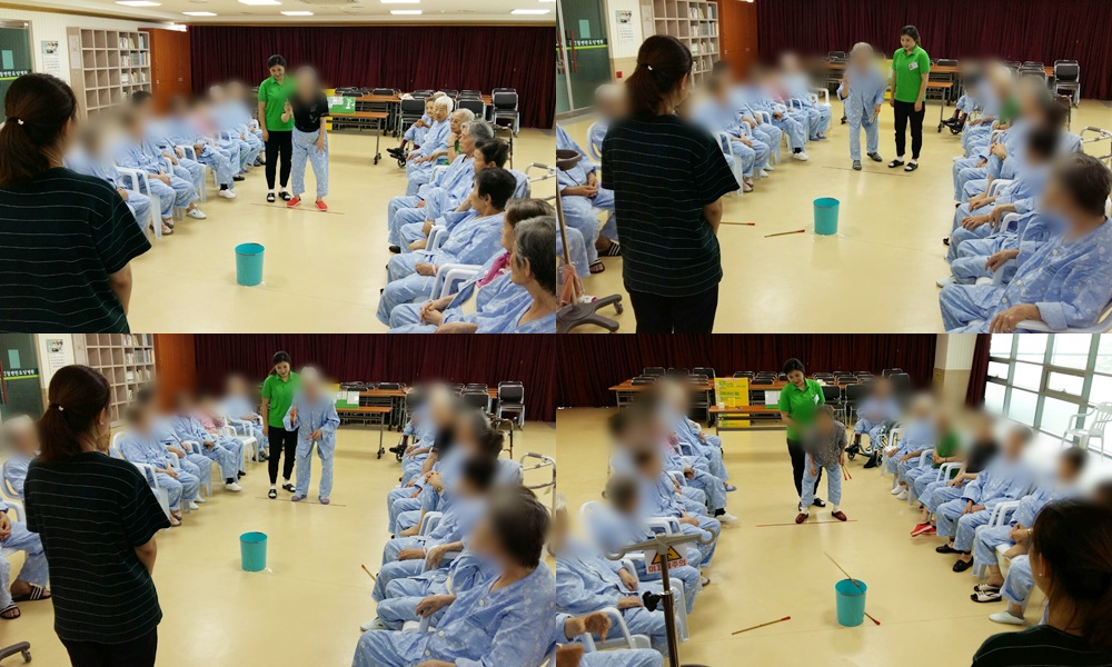 치료레크리에이션 - 투호 본문 2016년 7월 26일 오늘은 치료레크리에이션으로 투호를 하였습니다. 오늘은 조금 어려우셨는지 잘 하시는 어르신들도 낮은 점수를 받아 속상해 하셨지만, 그래도 다들 즐겁게 웃으시며 게임에 참여하셨습니다^^ 이전글 목록 다음글