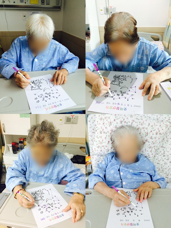 인지치료 - 숫자점선 잇기 본문 2016년 7월 11일 오늘은 인지치료로 숫자점선 잇기를 해드렸습니다. 차례대로 숫자를 이어가시면서 그림을 완성하시고는 무슨 그림인지 맞추시는 재미도 느끼셨습니다^^ 이전글 목록 다음글