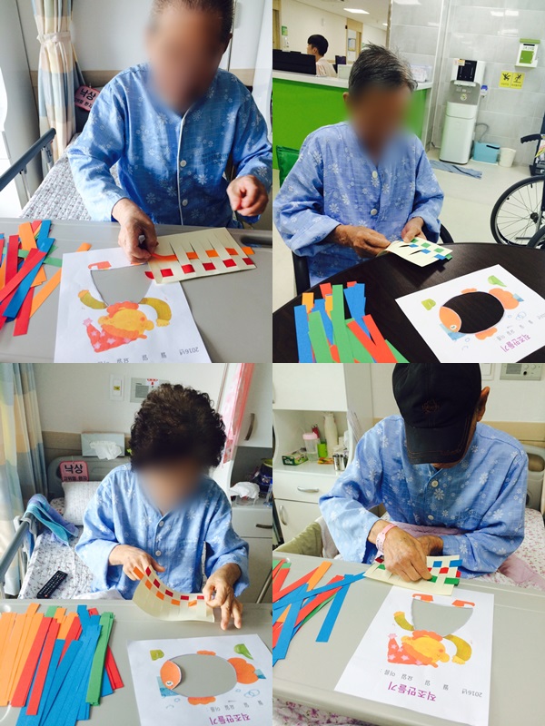 2016년 6월 16일 오늘은 인지치료로 직조만들기를 하였습니다.