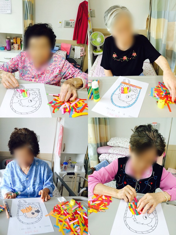 미술치료 - 색종이 접기 본문 2016년 6월 20일 오늘은 미술치료로 색종이 접기를 하였습니다~ 색종이를 접어 붙인 후 색칠까지 하시자 이쁘다며 좋아하셨습니다^^ 이전글 목록 다음글