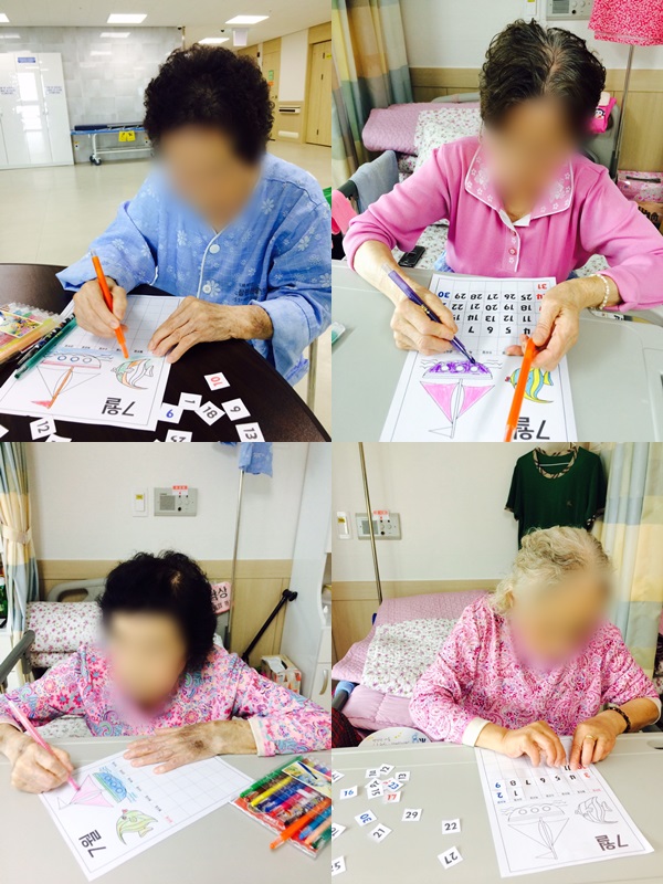 인지치료 - 7월 달력 만들기 본문 2016년 6월 27일, 지난 주에 이어 오늘도 인지치료로 7월 달력 만들기를 하였습니다~ 색칠도 꼼꼼하게 하시고 날짜 순서도 잊지 않으시며 달력을 예쁘게 완성하셨습니다^^ 이전글 목록 다음글