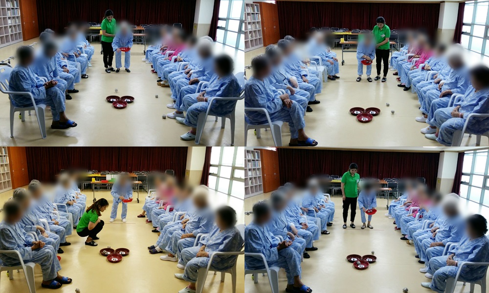 치료레크리에이션 - 신문지공 던지기 본문 2016년 6월 30일 오늘은 치료레크리에이션으로 신문지공 던지기를 하였습니다. 빗나가는 공을 보시면서 아쉬워는 하셨지만, 높은 점수를 받으실때는 다같이 기뻐하셨습니다^^ 이전글 목록 다음글