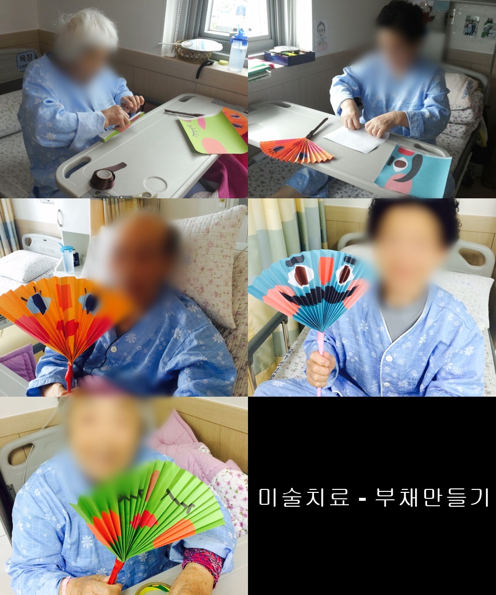 2016년 5월 16일 오늘은 미술치료로 부채만들기를 하였습니다~