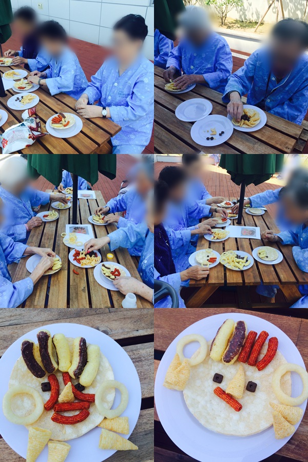 야외나들이 - 과자 얼굴 만들기 본문 2016년 5월 17일 오늘은 야외나들이로 과자 얼굴 만들기를 하였습니다~ 화창한 봄 날씨에 어르신들과 함께 야외테라스에서 과자 얼굴만들기를 하였습니다. 어르신들은 여러가지 과자로 다양한 얼굴을 표현하시면서 무척 즐거워하셨답니다^^ 이전글 목록 다음글
