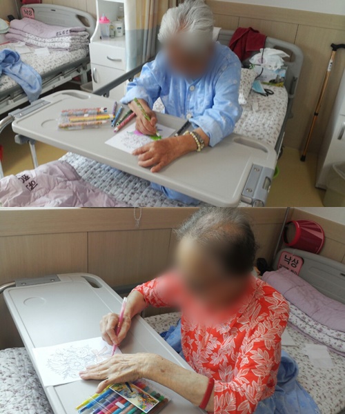 미술치료 - 그림 색칠하기 본문 2016년 5월 23일 오늘은 미술치료로 그림색칠하기를 하였습니다~ 빈틈없이 꼼꼼하게 그림을 색칠하시며 어르신들이 자신의 작품을 보고 만족하셨답니다~~ 이전글 목록 다음글