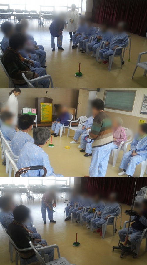 치료레크리에이션 - 고리던지기 본문 2016년 5월 2일 오늘은 치료레크리에이션으로 고리 던지기를 하였습니다~ 오늘은 어머님들께서 박빙의 승부이기 때문에 더 재미있게 게임을 즐기셨습니다.^^ 이전글 목록 다음글