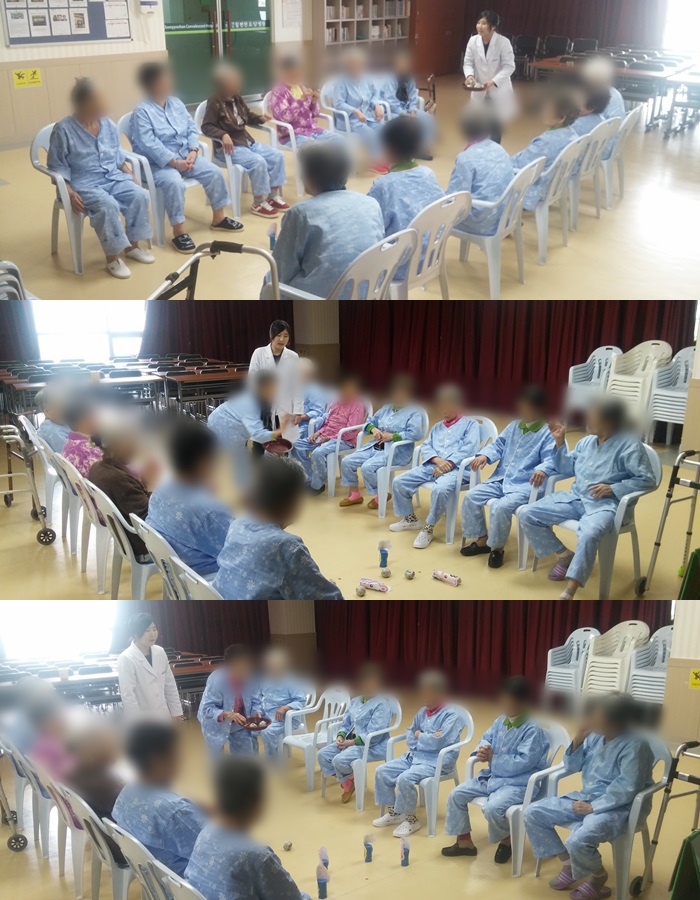 치료레크리에이션 - 동물 맞추기 본문 2016년 3월 24일 오늘은 치료레크리에이션으로 동물 맞추기를 하였습니다. 오늘은 만점은 받으신 분들이 많으셔서 모두들 기분좋게 게임에 참여하셨습니다~ 이전글 목록 다음글