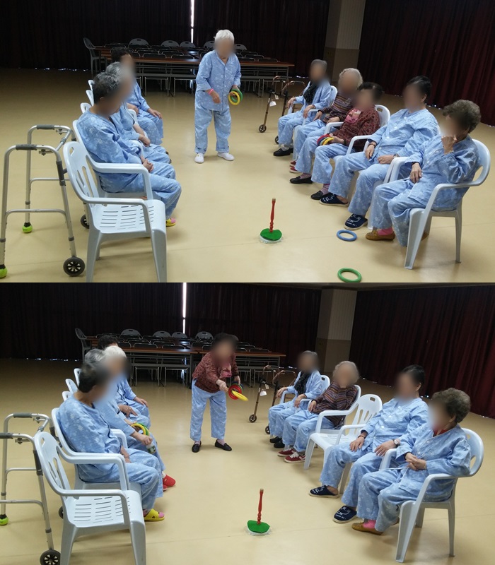 치료레크리에이션 - 고리 던지기 본문 2016년 3월 3일 오늘은 치료레크리에이션으로 고리 던지기를 하였습니다~ 어머님들께서 많이 어려워하셨지만, 재미있게 즐기셨답니다~ 이전글 목록 다음글
