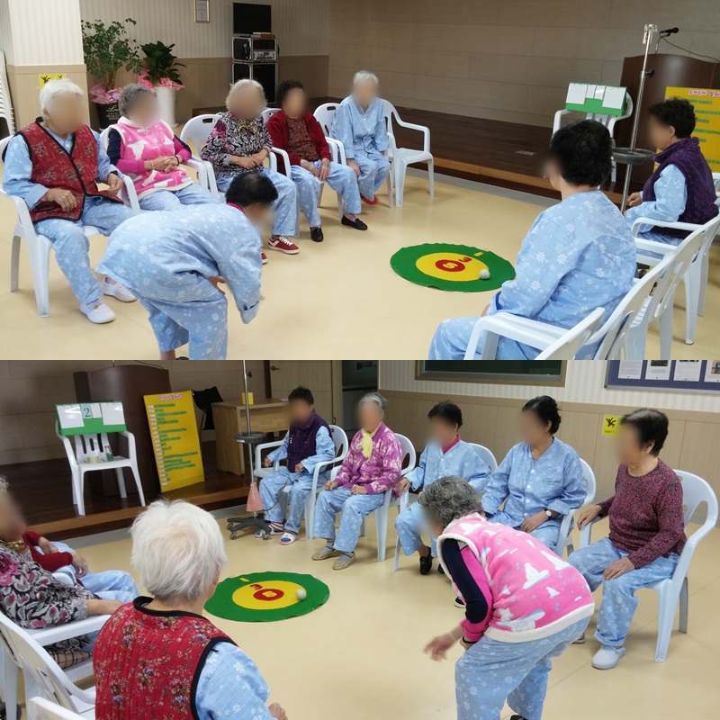 오늘은 치료레크리에이션으로 과녁 맞추기를 하였습니다~