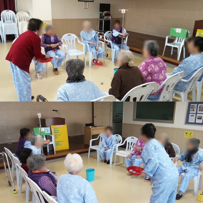 치료레크리에이션 - 신문지 공 넣기 본문 1월 13일 치료레크리에이션으로 신문지 공 넣기를 하였습니다 처음엔 다들 어렵다고 말하셨지만 후반에는 너무너무 잘하셨답니다~~ 이전글 목록 다음글