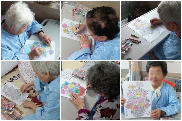 꽃이 너무 예쁘다고 좋아하시던 우리 어르신 색칠하니까 더 예쁘네요~