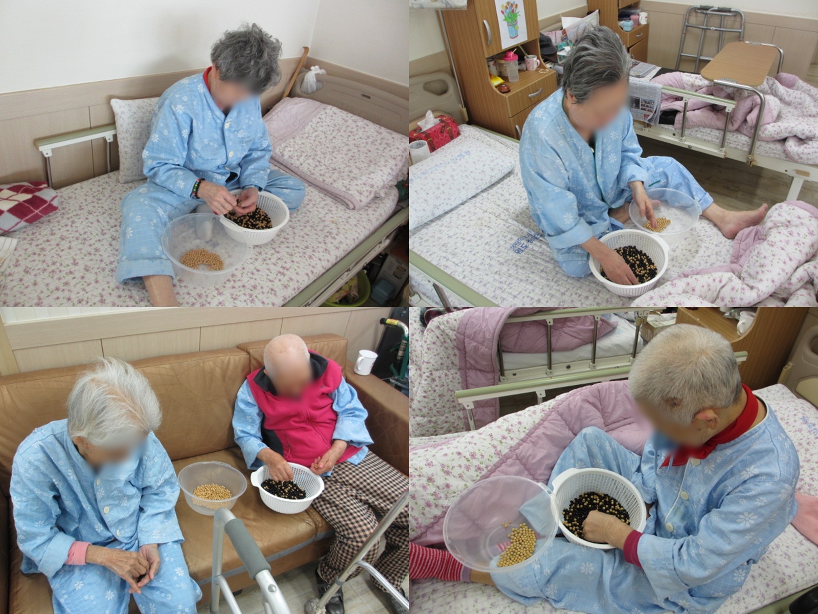 작업치료 - 콩 고르기 본문 어르신들의 소근육 기능 발달 및 유지를 위해 콩 고르기를 진행했습니다~ 지금은 손으로 콩을 고르고 계시지만 시간이 조금 더 지나면 숟가락이나 젓가락으로 콩을 골라보려고 합니다~ 이전글 목록 다음글