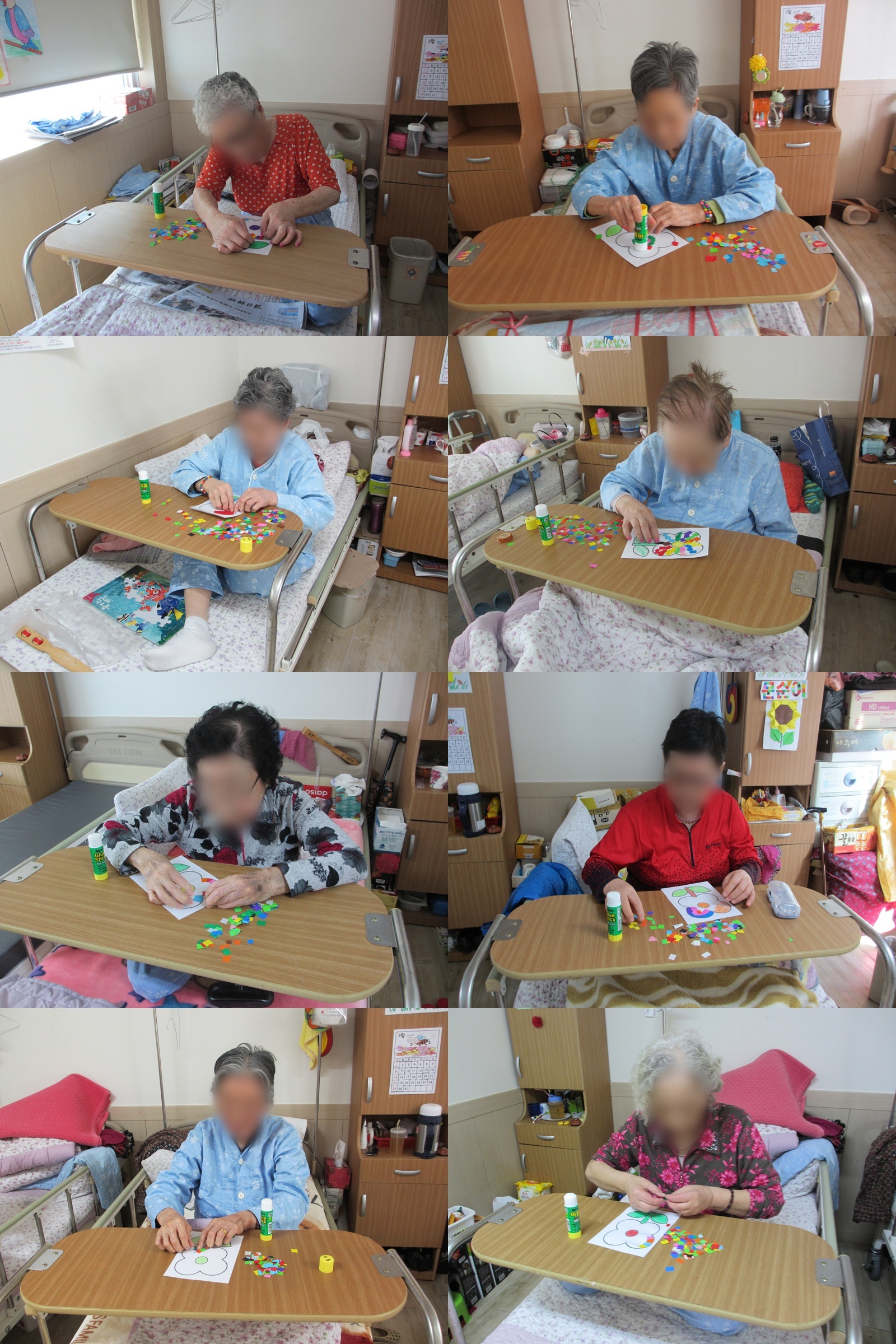 미술치료 - 모자이크 본문 3월 첫번째 개별프로그램으로 모자이크를 진행했습니다. 색종이의 색깔을 같게 하거나 섞어서 하는 등 어르신들마다 개성을 담아 모자이크를 하셨답니다~ 이전글 목록 다음글