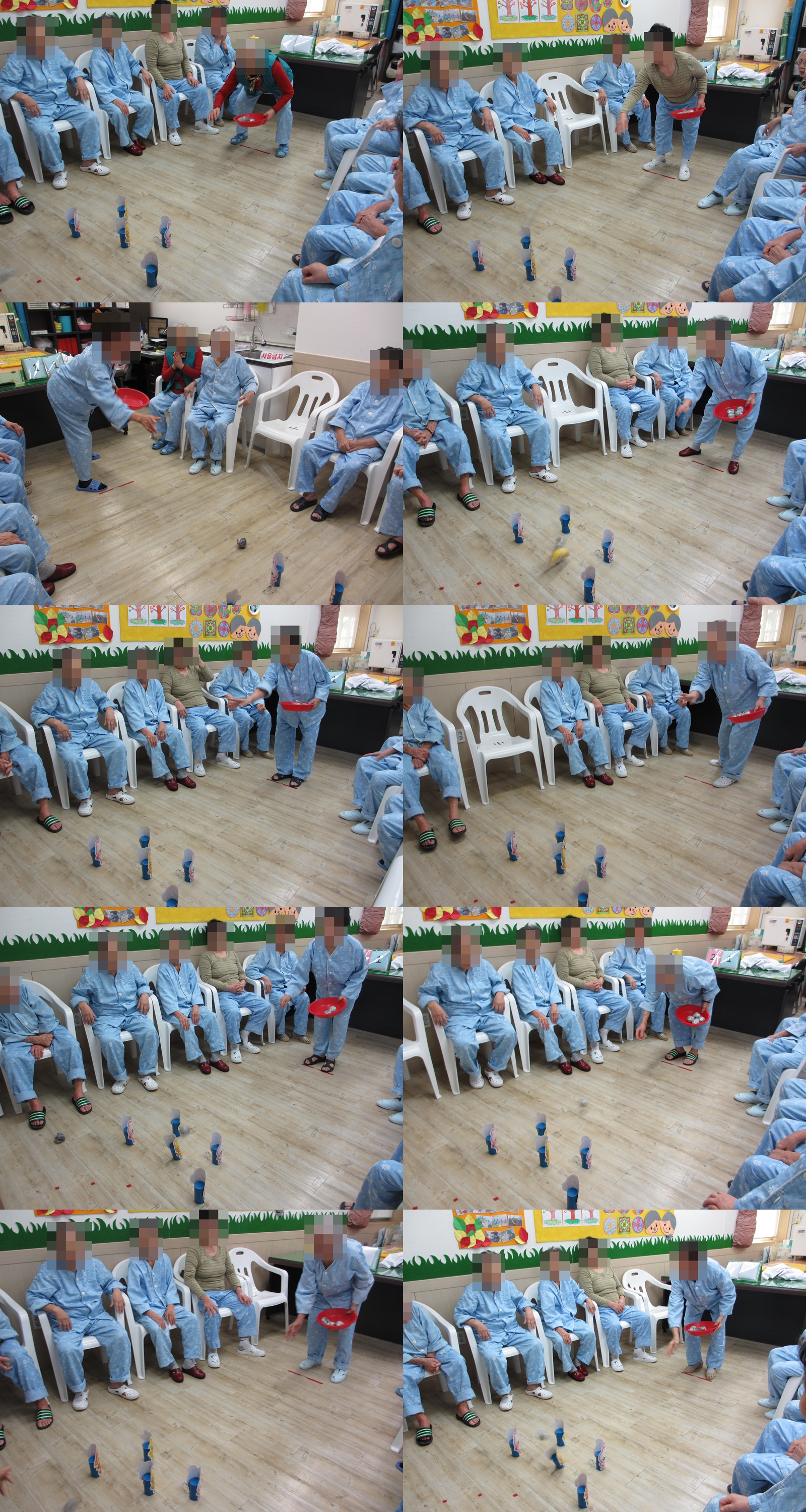 치료레크리에이션 - 동물 맞추기 본문 어르신들은 동물들 사이로 지나가는 신문지공이 너무너무 야속합니다. 하지만 다시 한 번 힘을 모아 신문지공을 던지는 우리 어르신들! 이전글 목록 다음글