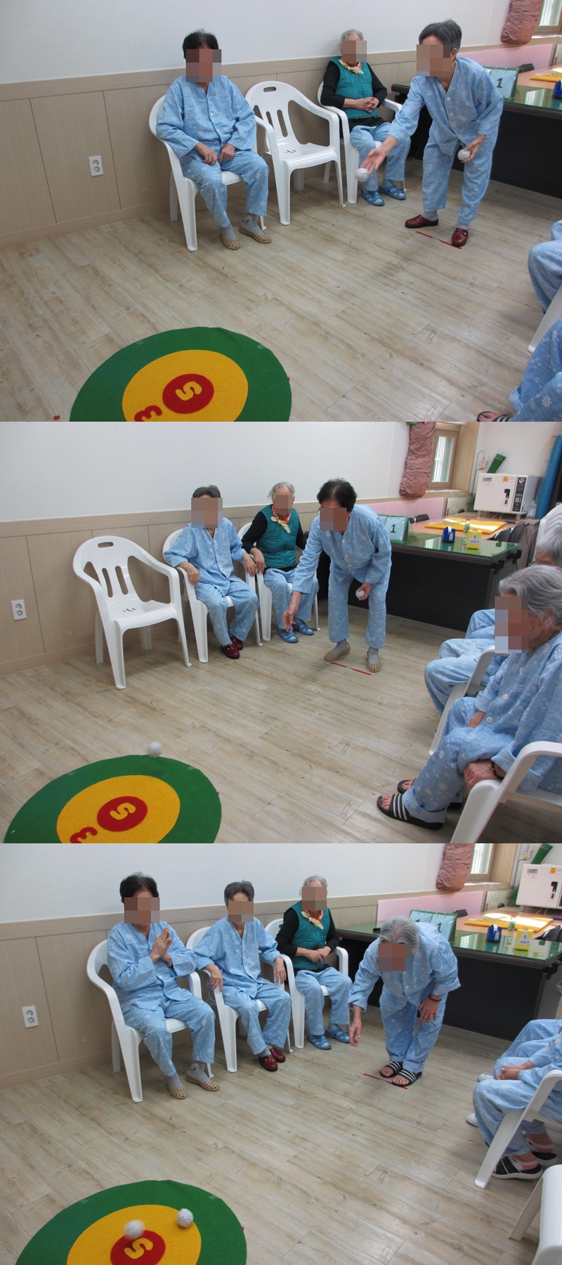 치료레크리에이션 - 과녁 맞추기 본문 쉬워 보이지만 생각보다 점수를 얻기 힘든 게임입니다. 공이 멈추길 바랄 때는 굴러가고, 공이 굴러가길 바랄 때는 멈추니 말입니다. 자신들의 생각대로 공이 움직여 주지 않아 가끔은 속상한 어르신들도 있으시네요~ 이전글 목록 다음글