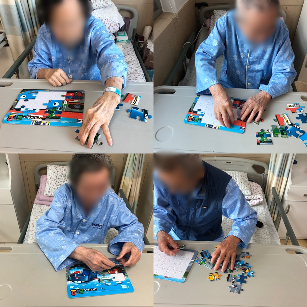 인지치료 - 퍼즐 본문 2020년 01월 20일 인지치료로 퍼즐 맞추기를 하였습니다. 퍼즐 맞추는 것을 어려워하지 않고 어디에 퍼즐 조각이 들어갈지 생각하며 즐거워 하셨습니다 ^^ 다음에는 난이도가 더 높은걸로 부탁한다며 허허 웃으셨습니다 ~~ 이전글 목록 다음글