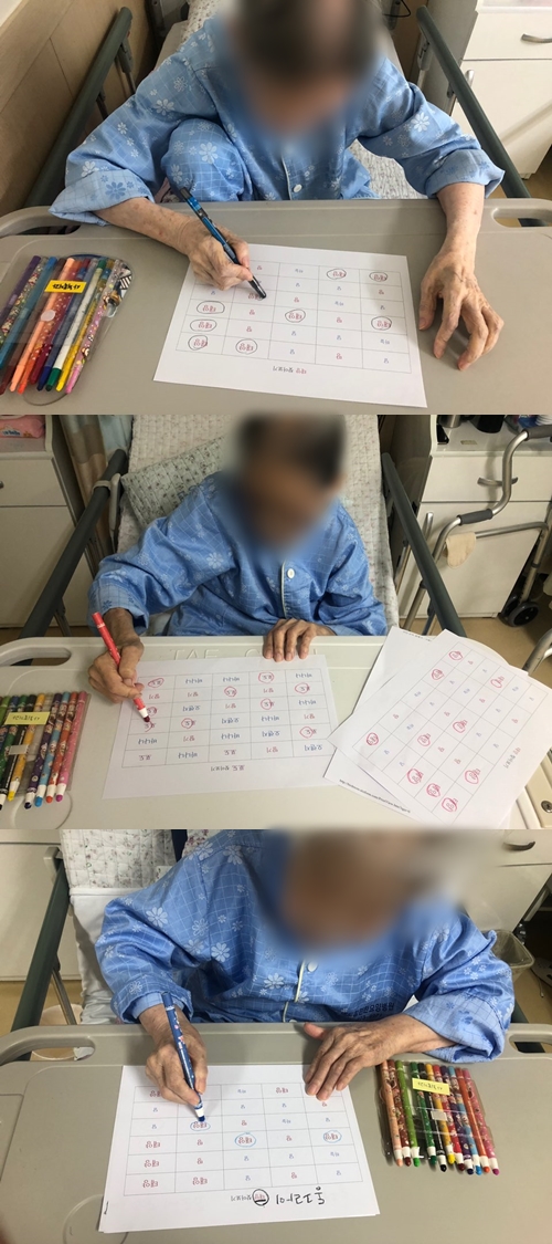 2020년 07월 16일 (목) 오늘은 인지치료로 단어 찾기를 하였습니다.