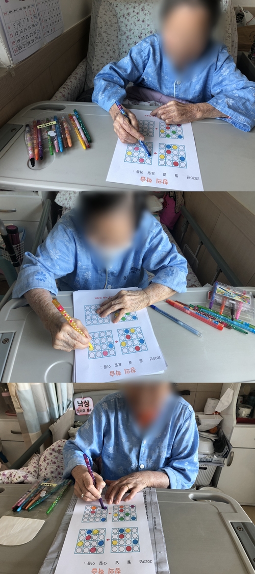 2020.10.27 인지치료 - 창의학습 본문 2020년 10월 27일 (화) 오늘은 인지치료로 창의 학습을 하였습니다. 색도 알아야하고 위치도 알아야한다며 은근 복잡하다고 하셨습니다~ 하지만, 어르신들께서 재미있어하셨습니다 ^^ 이전글 목록 다음글