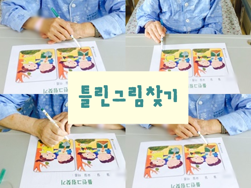 2024.02.15 인지치료 - 틀린 그림 찾기 본문 2024년 02월 15일 오늘은 인지치료로 틀린 그림 찾기를 하였습니다. 어렵다고는 말씀하셨지만, 두 눈을 크게 뜨시고 찾는 재미를 느끼셨습니다^^ 이전글 목록 다음글