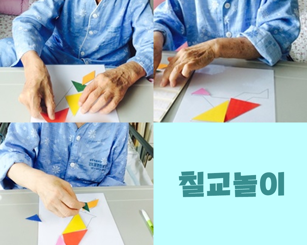 2024.03.13 인지치료 - 칠교놀이 본문 2024년 03월 13일 오늘은 인지치료로 칠교놀이를 하였습니다. 칠교놀이는 조금 헷갈려하셨지만 도안에 맞춰 잘 맞추셨고, 처음 해보는 어르신들도 재미있게 프로그램을 즐기셨습니다~! 이전글 목록 다음글