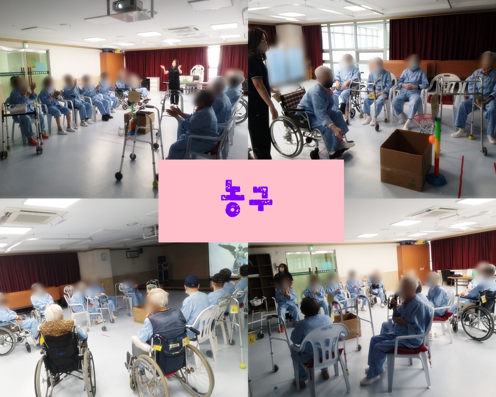 2024.12.02 치료레크리에이션 - 농구 본문 2024년 12월 02일 (월) 오늘은 치료레크리에이션으로 농구를 하였습니다. 어르신들께서는 오늘은 내가 농구선수라고 하시며 열심히 프로그램에 참여하셨고,게임이 끝난 후 번외 프로그램으로 노래부르기 시간도 가지며 흥겹게 프로그램을 마무리 하였습니다.^ㅡ^ 이전글 목록 다음글