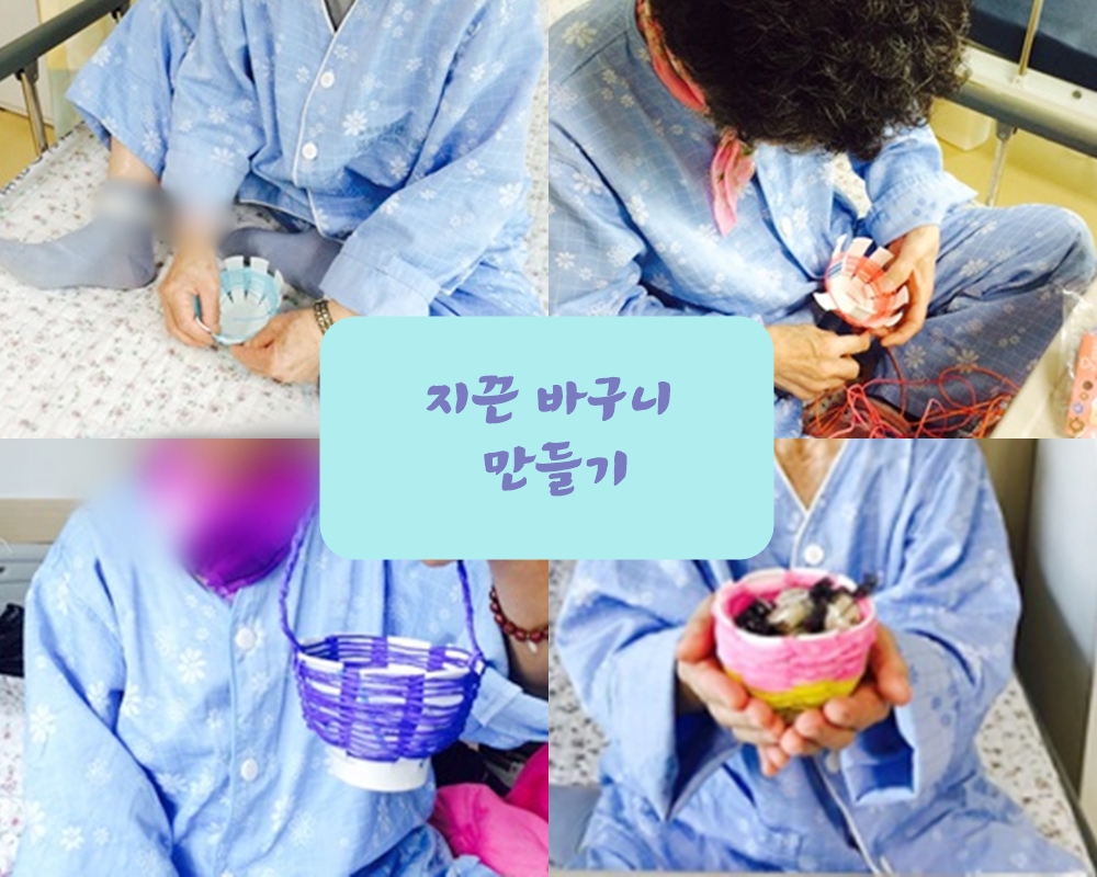 2025.02.19 미술치료 - 지끈 바구니 만들기 본문 2025년 2월 19일 오늘은 미술치료로 지끈바구니를 만들었습니다~어르신들께서 지끈을 꼼꼼하게 엮으시면서 바구니를 만드는 열정을 보이셨습니다. 덕분에 예쁜 바구니를 완성하였습니다^^ 이전글 목록 다음글