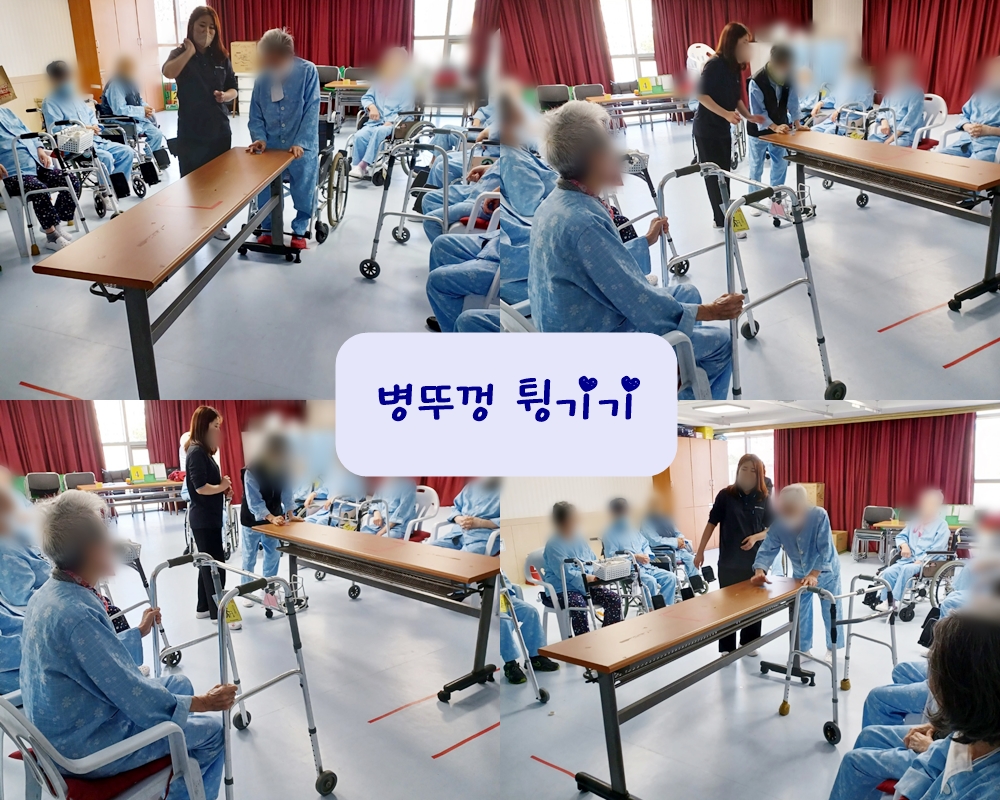 2025.05.13 치료레크리에이션 - 병뚜껑 튕기기 본문 2025년 05월 13일 (화) 치료레크리에이션으로 병뚜껑 튕기기를 하였습니다. 어르신들께서는 힘조절이 쉽지 않다고 하시며 생각보다 게임이 어렵다고도 하셨지만점점 높은 점수를 받는 요령을 터득하시며 충분히 게임을 즐기는 모습을 보여주셨습니다~!^^ 이전글 목록 다음글