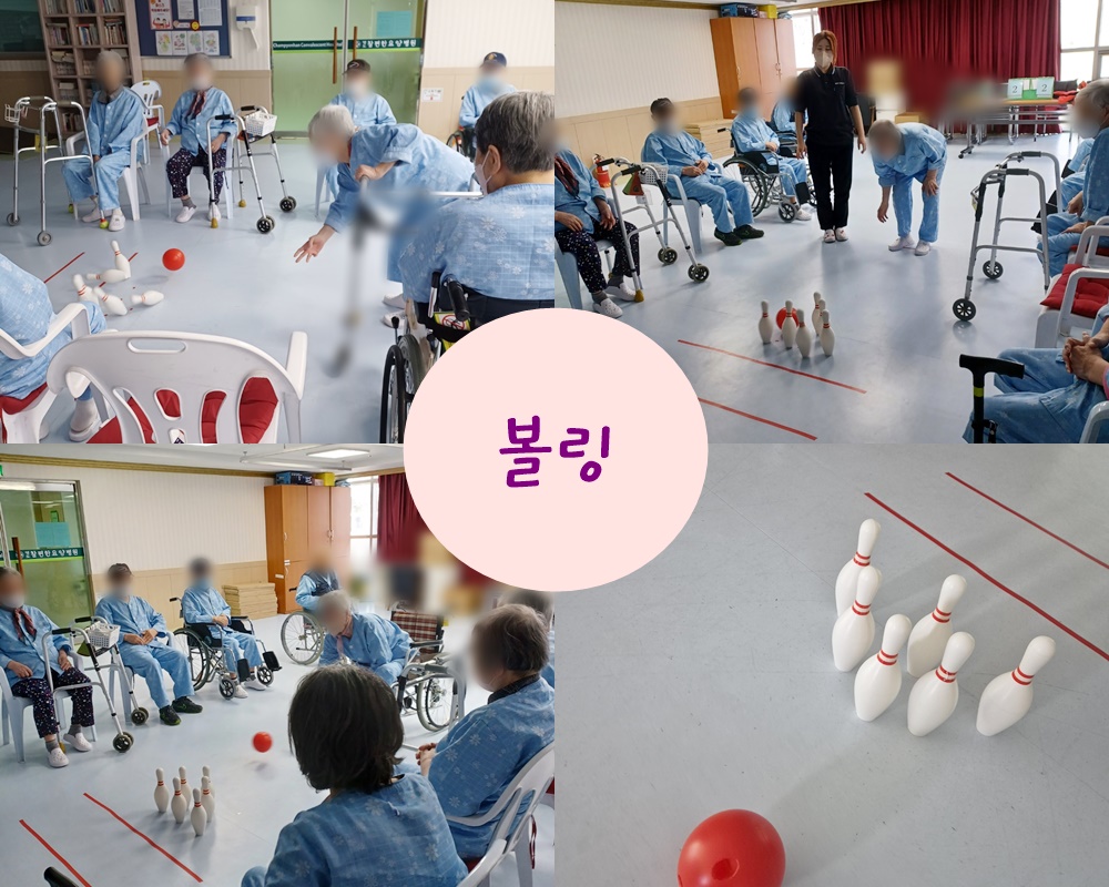 2025.06.23 치료레크리에이션 - 볼링 본문 2025년 06월 24일 (월) 치료레크리에이션으로 볼링을 하였습니다. 어르신들께서는 힘차게 볼링공을 잘 던지셨고, 볼링핀이 쓰러질때마다 신난다는 말씀을 하기도 하셨습니다. 이전글 목록 다음글