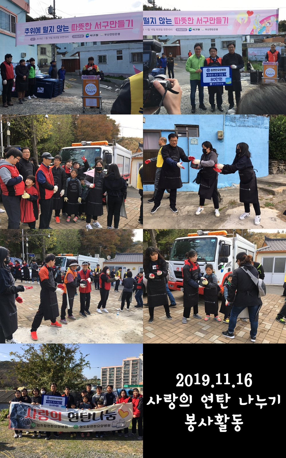 성원의료재단의 직원들은 지난 11월 16일 서구 아미동 일대에서 서구청 및 부산연탄은행에서 주최&주관한 '사랑의 연탄나누기 행사'에 참여 하였습니다. 연탄 1,000장 후원 및 감천참편한요양병원 / 영도참편한요양병원 직원들도 동참하여 연탄 배달을 돕기도 하였습니다. 지역사회 내 어려운 이웃들이 따뜻한 겨울을 보낼 수 있도록 작은 정성을 보태었습니다.
