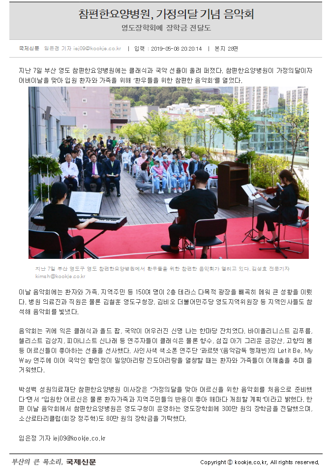 [병원복지&지역복지] 국제신문 - 참편한 음악회 관련 기사 게재