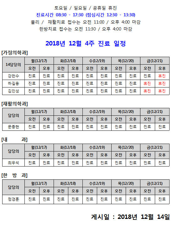 [안내] 12월 4주 진료일정