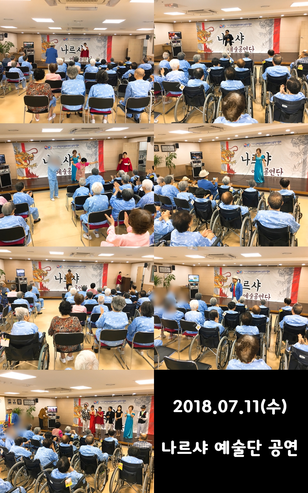 [병원복지] 7월 나르샤 예술단 공연 본문 2018년 7월 11일 (수) 나르샤 예술단의 공연 행사가 있었습니다. 오늘은 많은 인원의 어르신들께서 공연을 꽉 채워주셔서 더욱 더 흥겨운 분위기로 공연이 이루어졌으며 공연단 분들도 열정적으로 무대를 꾸며주셨습니다~^^ 이전글 목록 다음글
